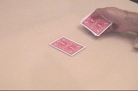 to the right. The motion of the hand to the right allows the first card to fall directly on