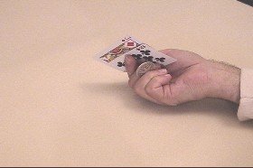 | To do the pick-up move the card is placed on top of a coin so the edge of the coin  |
