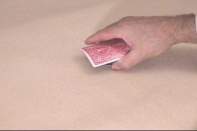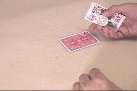 | coins on the table.  The cards are held as just described and held above the coin at the  |