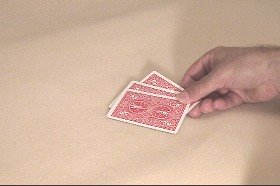| bottom card.  The left finger presses against the top card and the lower cards move to  |