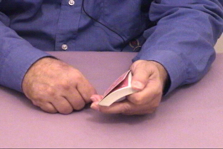 Thumb Pop Get Ready I had the idea of popping up the cards with the thumb instead of the little finger. I bumped into Ron Bauer at the magic shop and showed it to him. He suggested that the audience be allowed to see the first card pop up. Then, in the process of turning the card over, the hand turning the card over would cover the cards for an instant during which the second card would be allowed to pop up. Check it out.
